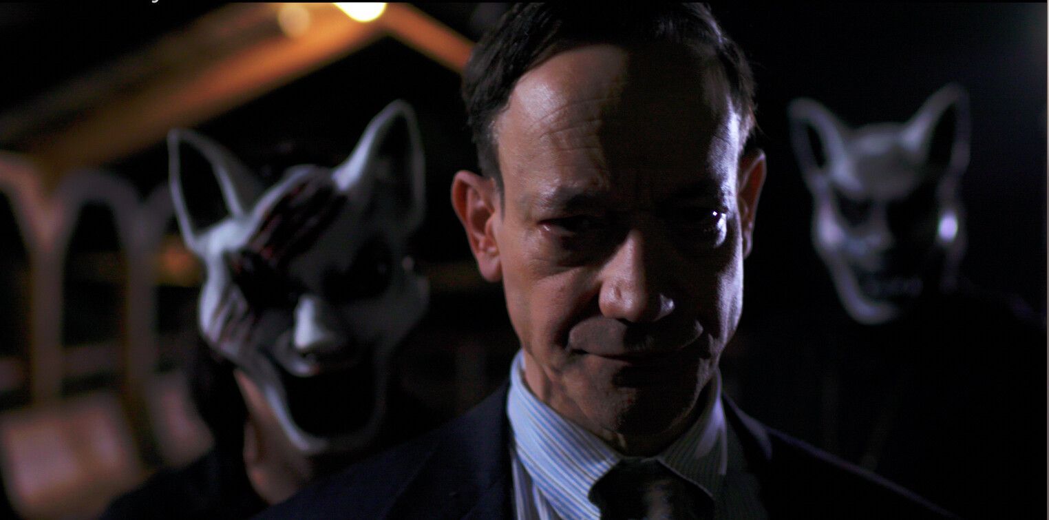 In a decaying 1990s industrial town, a derelict Gothic Art Deco cinema looms over decades of rumours about missing children and a faceless figure the locals only dare call Mr Whispers. When goth film student Kathryn Hale leads her classmates there to shoot a documentary about the urban legend, timed to coincide with the anniversary of the cinema’s worst tragedy, their night of guerrilla filmmaking quickly becomes a desperate search for a way out. As strange phenomena escalate and the porcelain-masked spectre at the centre of the stories appears to awaken, the students uncover evidence that the town’s long-buried child disappearances are linked to something still very much alive in the dark.